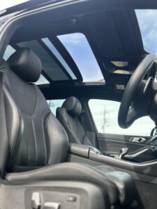 また、快適装備も非常に充実しており、「プラスパッケージ」「ソフトクローズドア」「パノラマガラスサンルーフ」など、上位グレードならではの仕様がそろっていました。プラスパッケージには、4ゾーンオートマチックエアコンやソフトクローズドア、保冷保温機能カップホルダーなどが含まれ、BMWらしいラグジュアリーな空間を演出。ソフトクローズドアは軽く押すだけで自動的に静かにドアが閉まる機能で、高級車らしい使い心地と満足感を高めます。